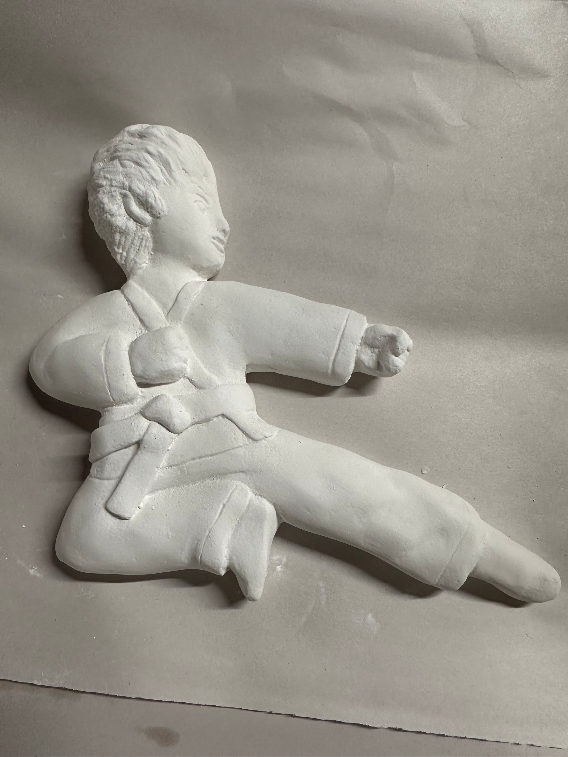Wall plaque casted in white art plaster. Handmade in the USA